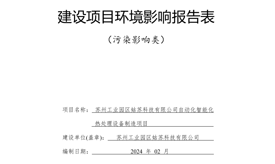 苏州工业园区姑苏科技有限公司自动化智能化热处理设备研发制造项目环境影响评价公示